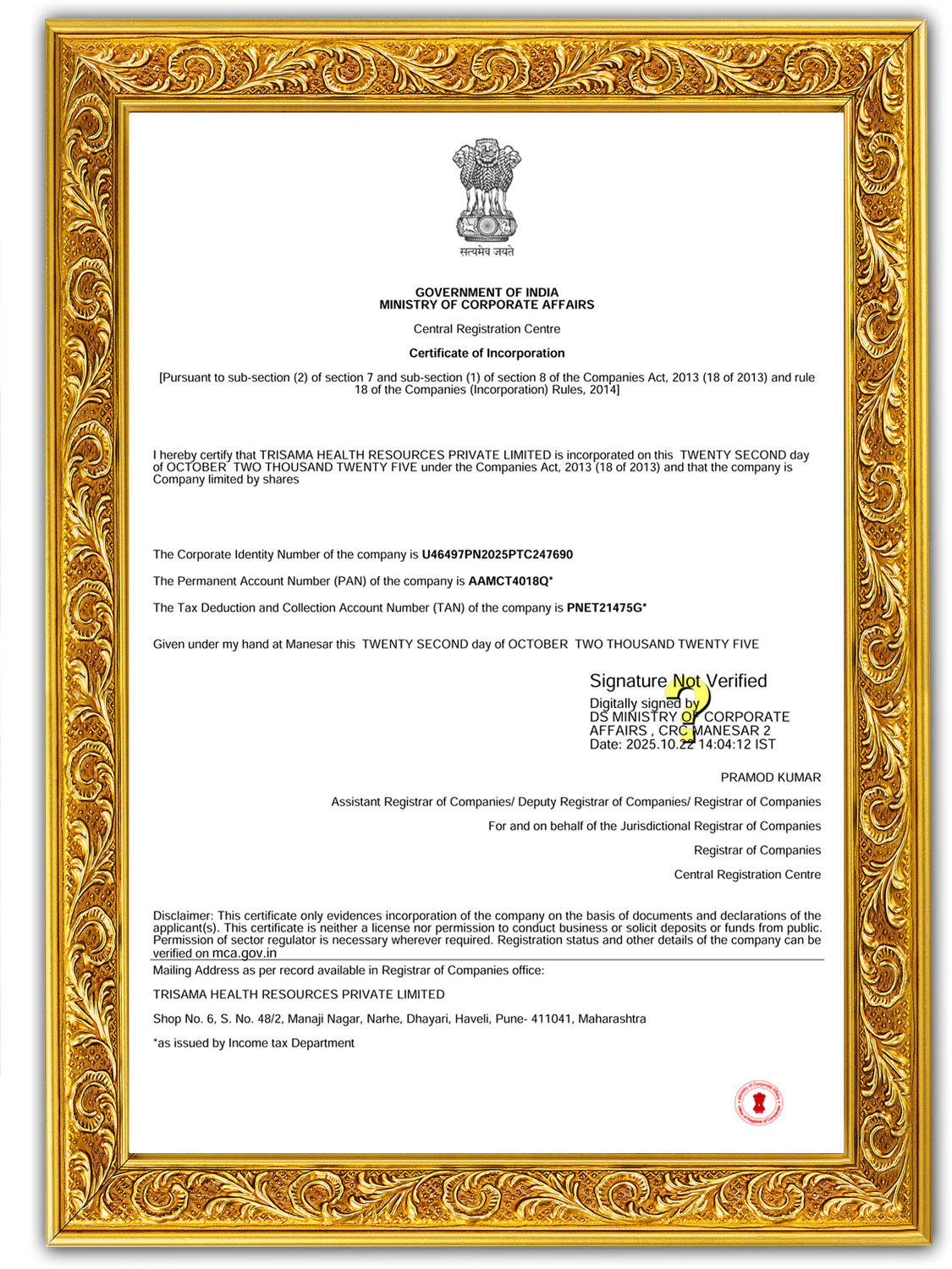 Incorporation Certificate